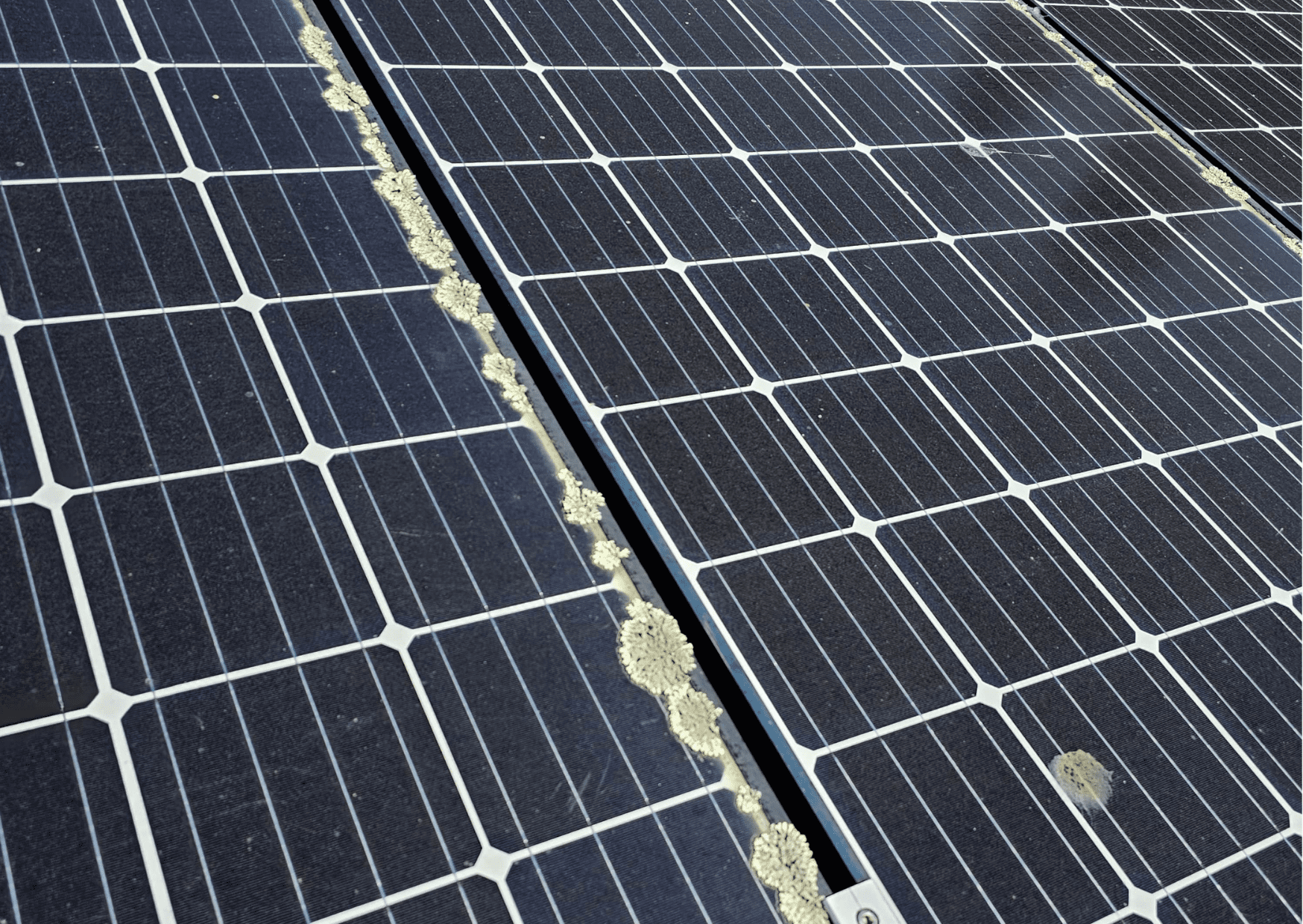 The other array was effected with environmental dirt and had bird droppings here and there, easier to clean with no extra labour involved, but still enough to reduce sunlight entering the cells.